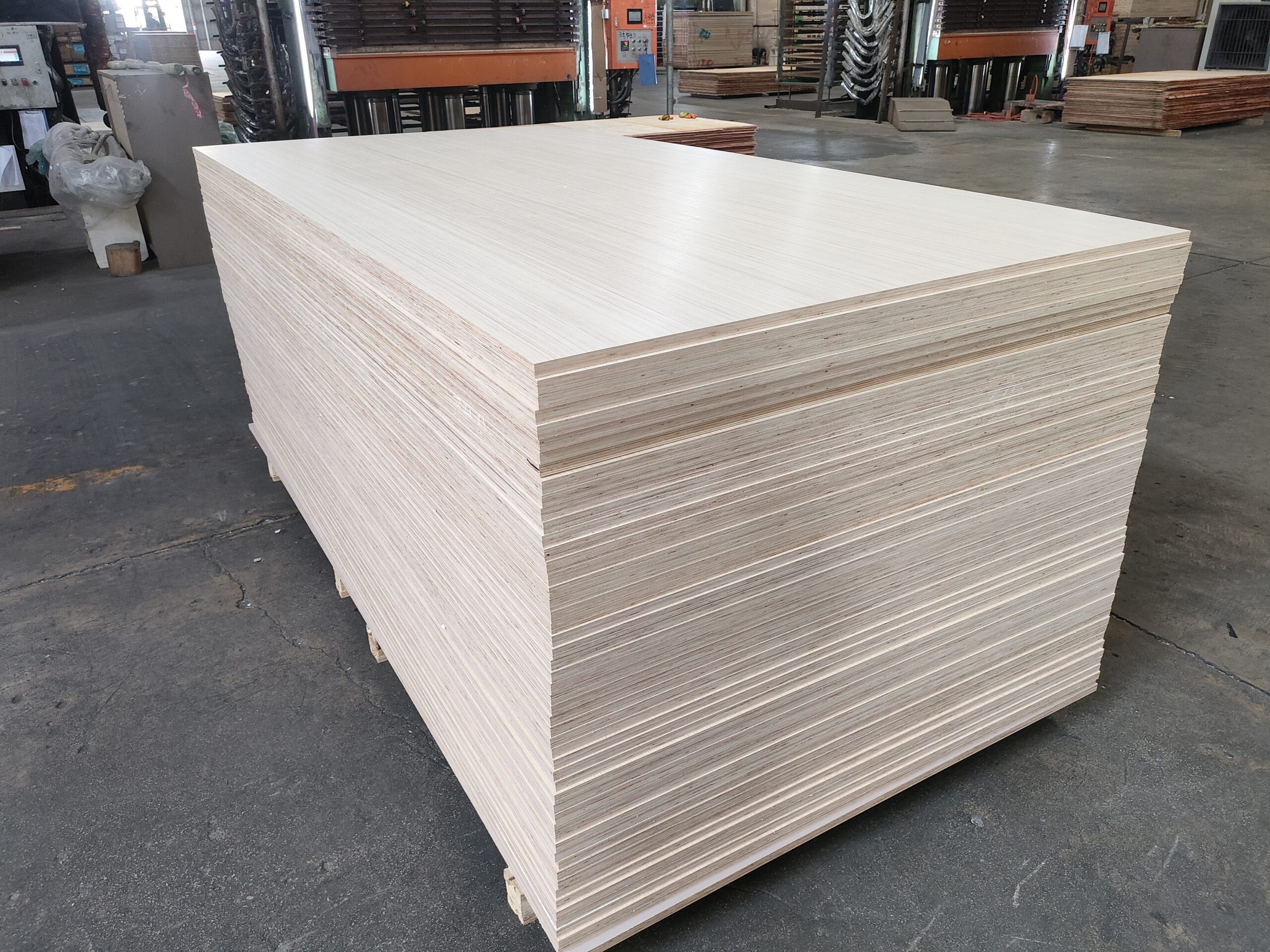 This image shows a bulk stack of boards ready for the factory floor. Each sheet contains a solid cedar core protected by a smooth, moisture-resistant outer layer, combining natural beauty with industrial durability.
